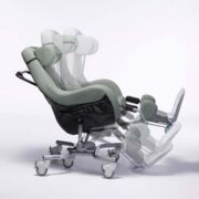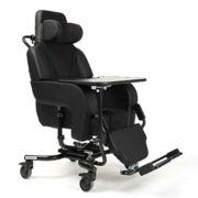 De série, le fauteuil Altitude est équipé d’un appui-tête, de harnais et de repose-jambes réglables en inclinaison par vérin.