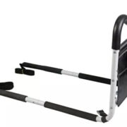 Cette barre de lit Protect ultra s’installe sans outils. Elle est équipée d’une pochette double poche et est maintenue au lit par 2 sangles.