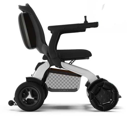 Il est équipé à l’arrière et à l’avant de roues de 10 pouces et les roues avant sont omnidirectionnelles. Les roues omnidirectionnelles sont une révolution dans le domaines des fauteuils roulants électriques. Elles tournent dans tous les sens et permettent d’aborder des virages serrés. Elles sont parfaitement adaptées à une utilisation à l’intérieur et dans des espaces restreints.