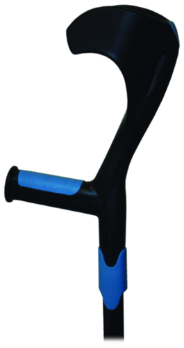 – Canne anglaise réglable en hauteur avec haut de canne bi-matière (poignée anti-glisse couleur).