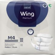 Les protections ceintures ABENA WING se déclinent en 4 niveaux d’absorption et en 4 tailles différents, pour une solution la plus adaptée aux problèmes d’incontinence et à la morphologie de la personne. Les protections ceintures ABENA WING offrent une protection urinaire optimale associée à une mise en place facilitée. Ecolabellisés Nordic Swan, leur composition offre un risque de réactions allergiques extrêmement faible.