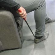 Ce chausse-pied bénéficie d’une structure en métal anthracite martelé. Sa poignée en mousse est très confortable et visible.