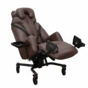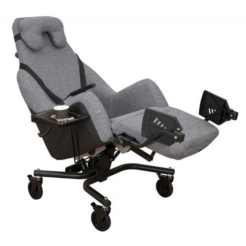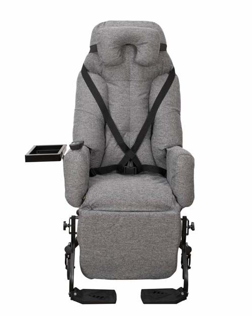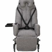 Il est équipé de série d’une tablette latérale, d’une assise mousse mémoire de forme Visco (Classe II) , d’un harnais et d’un oreiller cervical anatomique.