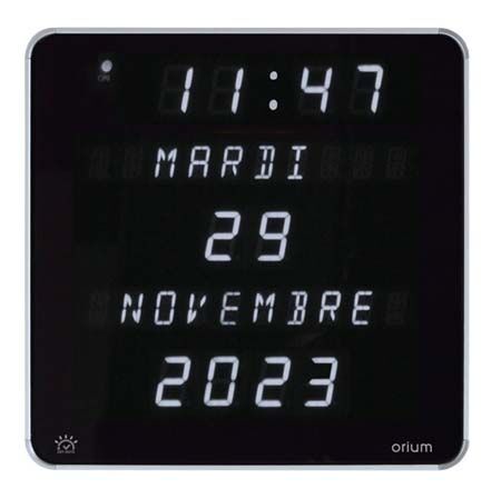 L’affichage contrasté en blanc de cette horloge la rend très lisible, même pour les malvoyants.