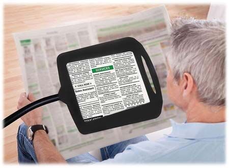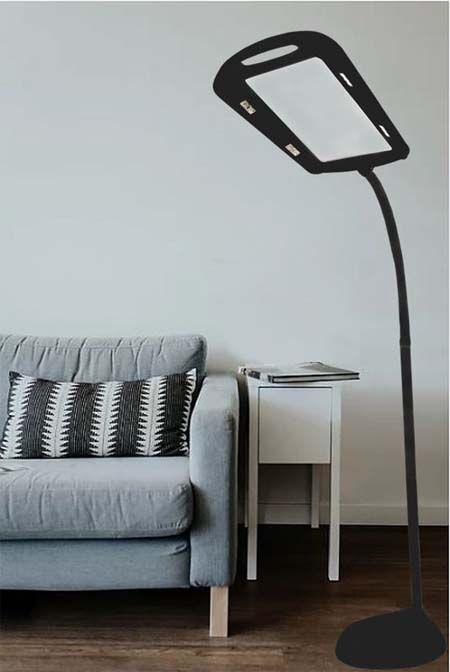 La hauteur de cette maxi loupe sur pied est adaptée à la lecture assis.