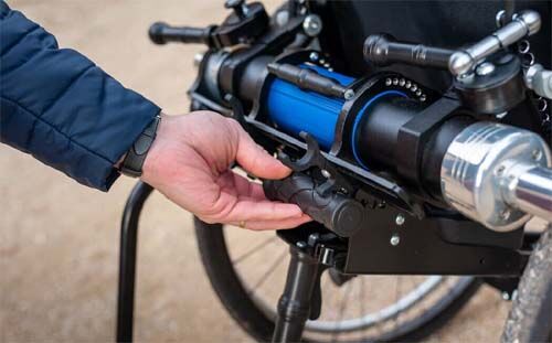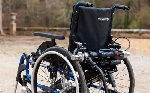 Pour certains handicaps, l’action d’une tierce personne est nécessaire dans les déplacements. La motorisation POUSSEUR 2.1 vient soulager le travail de la tierce personne.