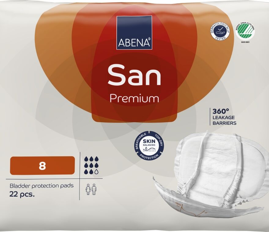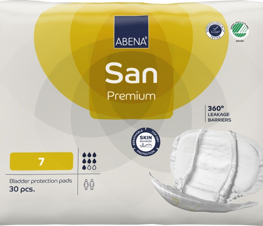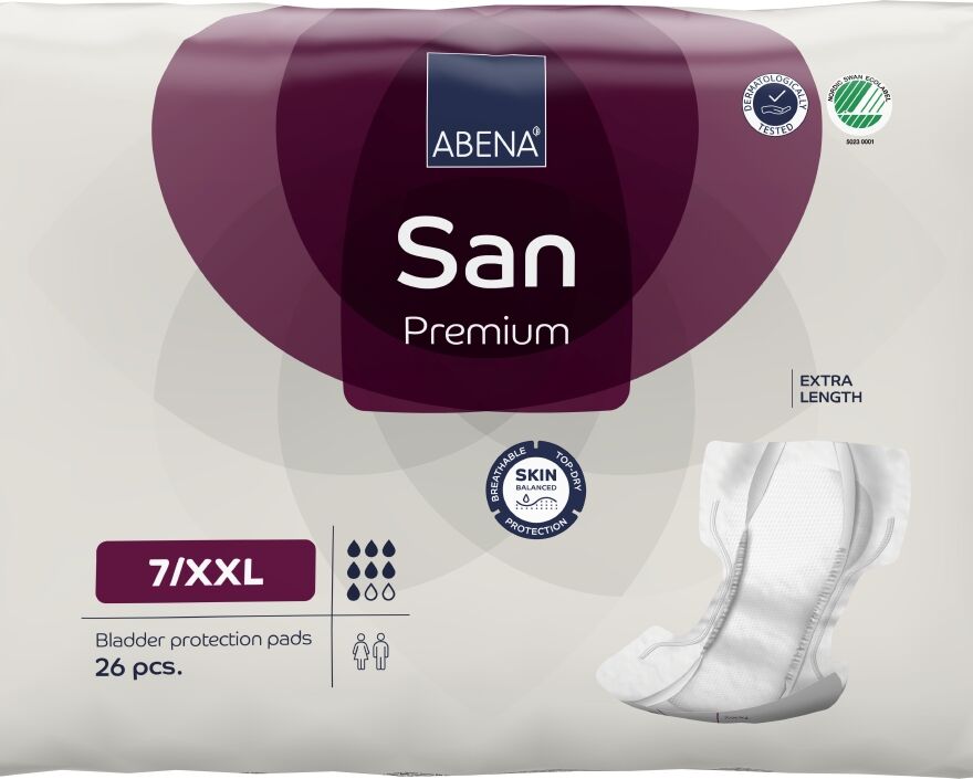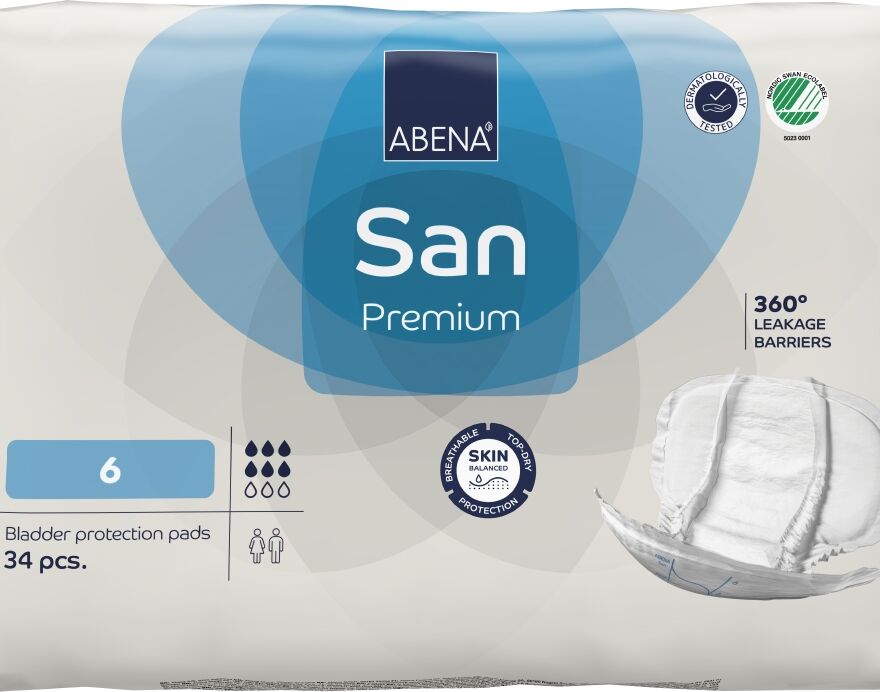 Les protections ABENA San sont écolabellisées NORDIC Swan, gage d’un produit respectueux de l’environnement et de la santé de l’utilisateur. Toutes les matières premières utilisées pour la fabrication ont été testées et approuvées et elles sont garanties sans parfum, ni lotion, ni additifs ou substances chimiques.