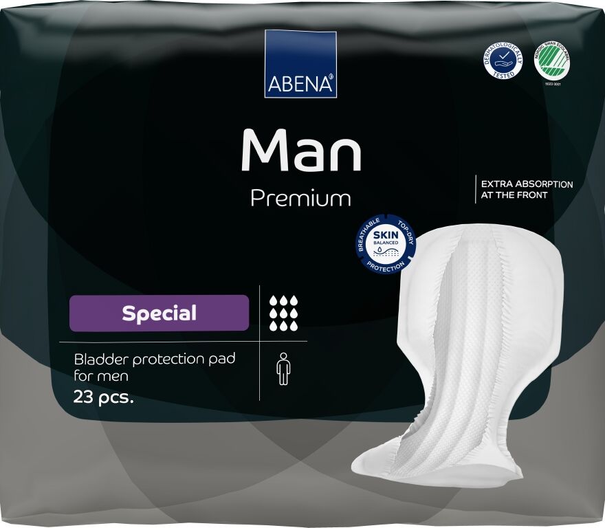 Les protections ABENA Man  sont écolabellisées Nordic Swan, gage de respect de l’environnement et de la santé de la personne.