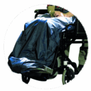 – Sangles réglables en longueur pour sécuriser le manchon sur le fauteuil roulant.