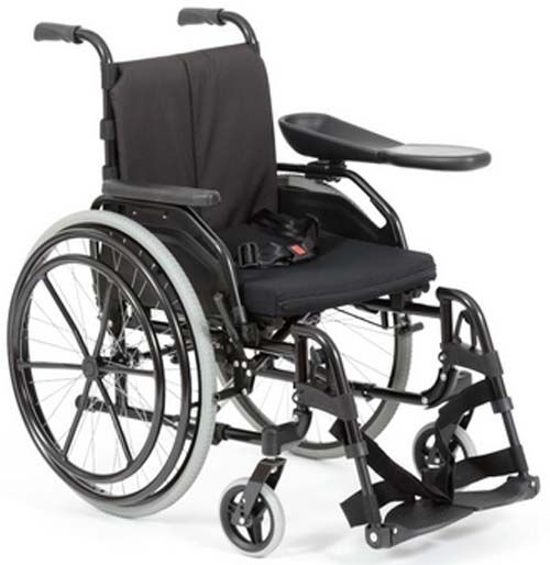 Le fauteuil START M2 possède un chassis en aluminium intégral lui conférant une légèreté et une maniabilité indéniables ( 14,7 kg en poids total et 9,6 kg en poids de transport.