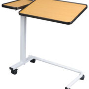 Cette table évolution permet d’être utilisée sur un fauteuil standard, mais aussi sur un fauteuil releveur, grâce à sa base réglable en largeur.